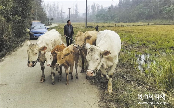 随县万和镇万家湾村民利用当地的山场资源发展养殖业,出现了一批养牛养羊专业户,实现养殖增收。(随州日报全媒记者 孙洪涛摄)