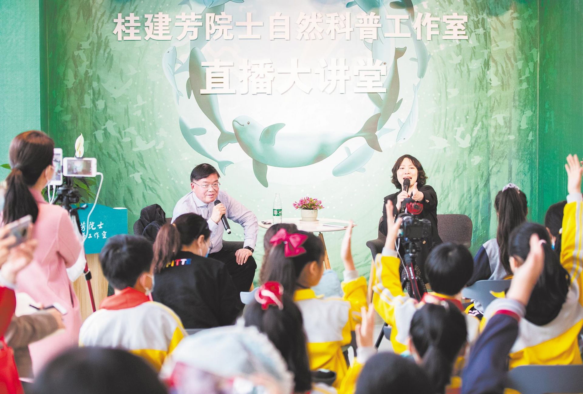鱼类遗传育种学家、中国科学院院士、发展中国家科学院院士桂建芳为小学生讲“鱼文化和渔科学”科普课。