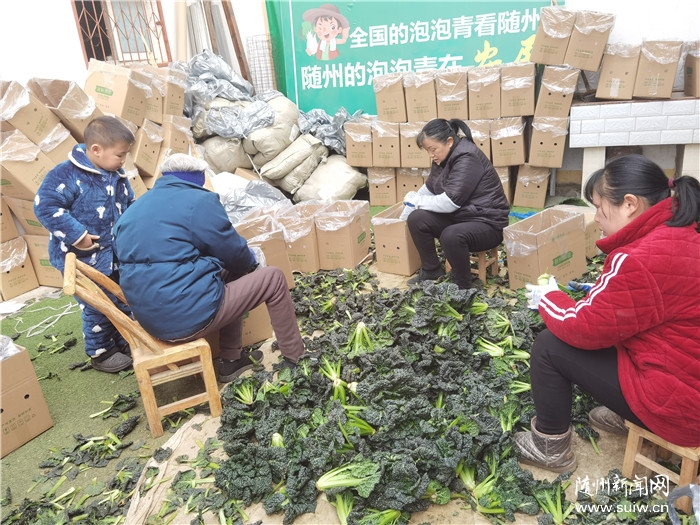 1月24日,在随县安居镇,湖北省鲜选农业发展有限公司负责人张傲君来到漂水河村,从农户处收购来3000多斤泡泡青。“前一天网上下单多少,第二天就收多少。快过年了,销量倍增。”张傲君介绍称。