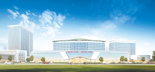 武汉大学人民医院洪山院区效果图。(受访单位供图)