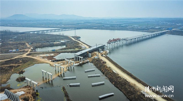 南外环跨府河大桥是南外环道路即346国道十岗至任家台段的重点工程,该桥总投资9220万余元,桥宽25.5米,共27跨,紧邻下游麻竹高速跨府河交通桥。 (随州日报全媒记者李文军摄)