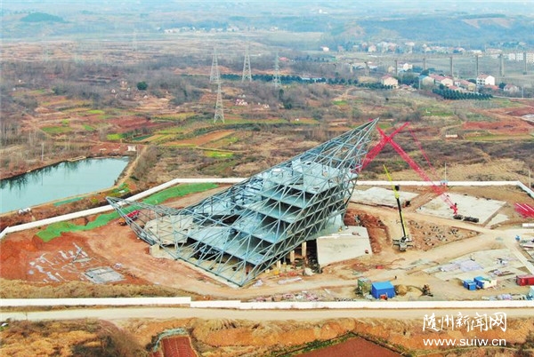 位于广水市应山街道黑虎冲的小镇客厅是广水多肉艺术小镇的地标性建筑,预计今年上半年完工。小镇客厅高23.4米,建筑面积1.4万平方米,建成后可容纳500余人办公,承办商务会议和培训展览等活动。 (随州日报全媒记者徐斌摄)