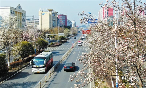 近日我市气温节节攀升,最高温已经超过20℃,随城清河路上的玉兰花竞相绽放。(随州日报全媒记者 徐斌摄)