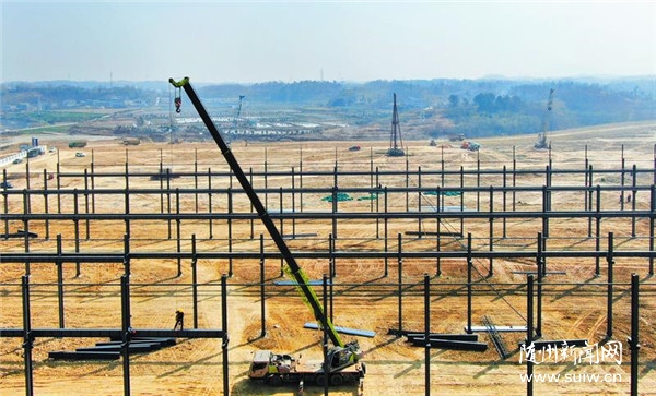 随州市何店高质量发展示范区建设确定了先期产业启动区和园区路网走向等基础工作。率先落地的湖北金龙应急救援产品研发及智能制造项目正在加速推进中,1号和6号车间预计3月底竣工。(随州日报全媒记者徐斌摄)