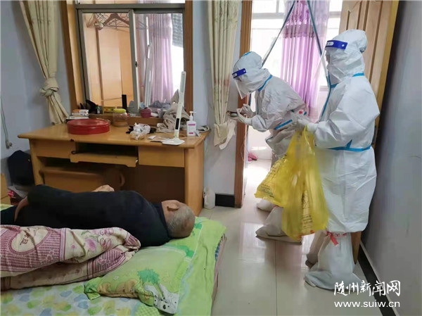 随州日报讯(全媒记者 刘诗诗 通讯员 姚威 刘大印)“闺女,麻烦你们了,辛苦了啊!非常感谢!”4月3日,随州市检察院党员突击队员上门为鹳坑巷住户冯大爷做核酸检测,还关切地询问老人是否需要买菜买药,并顺便帮老人把家里的垃圾也带了出去,赢得老人连声道谢。