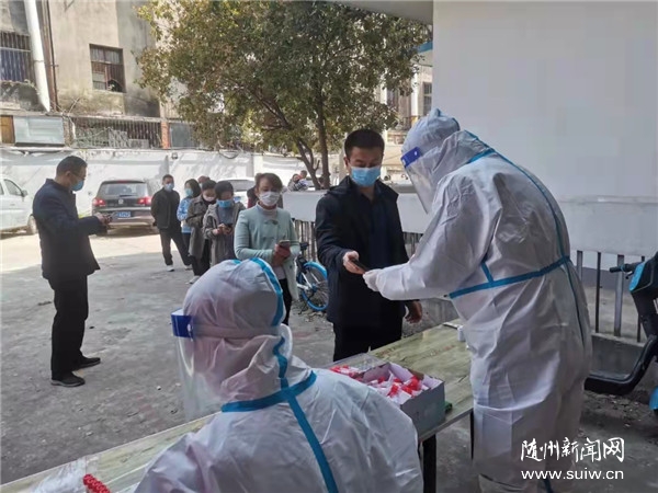 随州农商行党员干部在核酸检测现场,细心耐心引导人民群众保持秩序,确保核酸检测工作有序进行,并为老年住户买药、买菜、维修天然气灶等,送服务上门,在“疫情”中体现“暖情”。