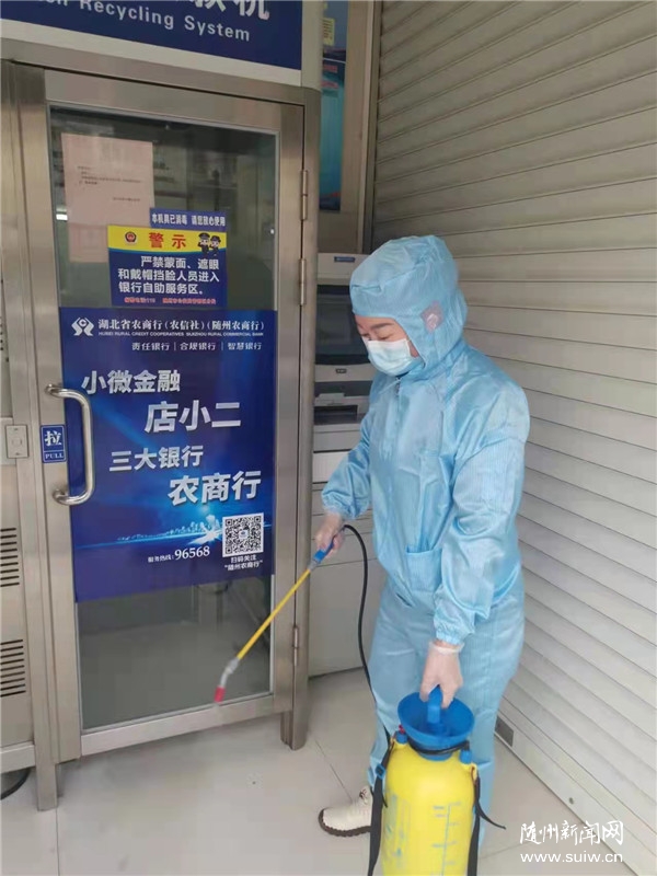 随州农商行每日早、中、晚三次对离行式自助网点、ATM机具进行清洁消杀,及时将已消毒的人民币进行加钞,保证自助设备正常运行,为居民提供金融便利。