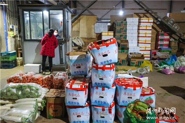 “这些都是按照银泰百货需求单采购的蔬菜等货物。”仓库的一角,商户肖诗勇指着地上堆积的货物告诉记者。这些货物里,包菜、白菜、胡萝卜、葱、蒜等一应俱全,按照墙上对应的文峰店、外滩二店、中心店、广场店等标牌已摆放整齐。“马上银泰就要来车拉进商超,再按订单分发到群众手中。我们一天为其供应30吨左右的蔬菜。”