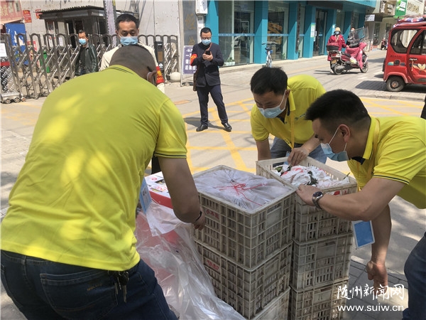 随州日报讯(全媒记者 陈巧玲 通讯员 何花)“辛苦了,感谢大家的辛勤付出!”4月6日,市政协委员、湖北味万金商贸有限公司总经理金磊带领公司员工来到西城飞来土社区,为社区工作人员、志愿者和下沉党员干部等防疫一线人员送去9箱新鲜水果,向他们表达深深的敬意和感谢。