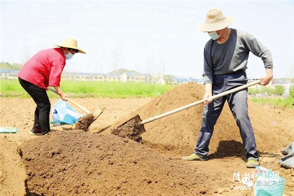 高城镇高黄村村民张玉堂夫妻正在拌匀农肥,为育整秧田作准备。
