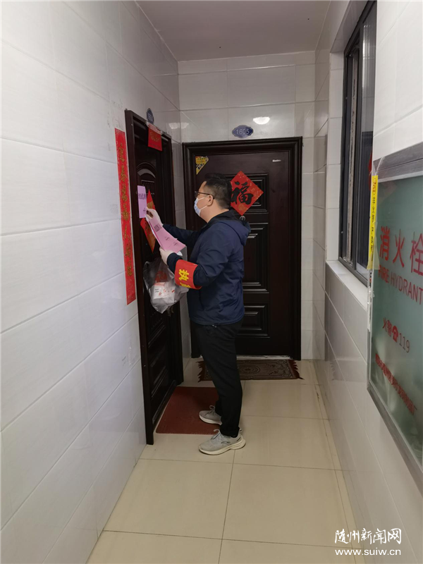 4个西红柿、2斤五花肉、一根黄瓜…..提着满满2大袋子蔬果,曹虎来到了6号楼1203室,“您好,这是您需要的物资,放在门口了。”离开前,曹虎还不忘提醒对方:“你安心在家呆着,还需要什么微信上说,我们再送”……这是曹虎上午第6趟为居家隔离的群众送生活物资。