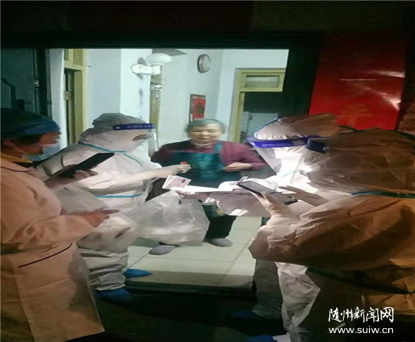 在得知辖区内有行动不便的老人后,曾都区农业节水中心陈春梅配合社区工作人员、医护人员,开展入户核酸采样。每到一户居民家中,先为其进行信息登记、消毒,再进行取样,确保核酸检测不漏户、不漏人。