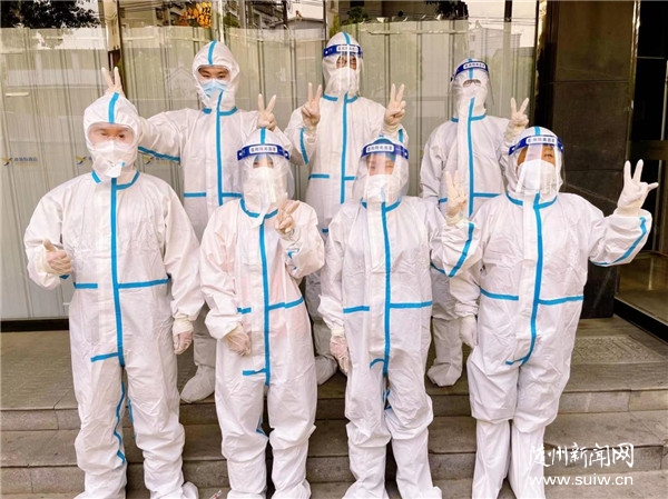 随州日报讯(通讯员 张亮)隔离阻断是战胜疫情的重要因素,有这样一群可爱的人,分别来自曾都区水利部门下沉党员、公安干警、医疗卫生行业、志愿者等组成雅斯特酒店(白云湖店)隔离点应急处理队,他们平均年龄40岁,最大的64岁,最小的只有23岁,在距离隔离人员最近的地方坚守着,用爱与奉献织出一张牢密而坚实的守护网,保障着他人的健康,在令人望而生畏的隔离点里,他们“主演”了一幕幕温暖有爱的故事。