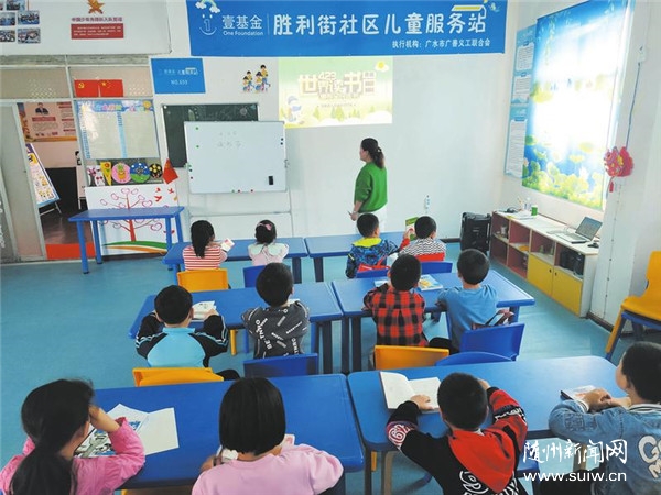 读书让人明理,读书使人励志。4月23日是第27个“世界读书日”,广水市广善义工联合会紧紧围绕“沐浴书香·强国有我”主题志愿服务活动,在应山街道胜利街社区“儿童服务站”开展读书活动,以书香启迪智慧,用诵读润泽心田。 (随州日报通讯员刘小斌、程开军摄)