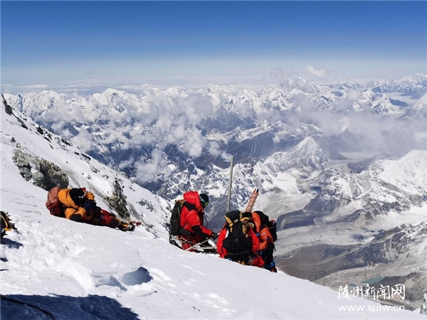 5月4日,科考队员登上珠穆朗玛峰峰顶。新华社特约记者 索朗多吉 摄