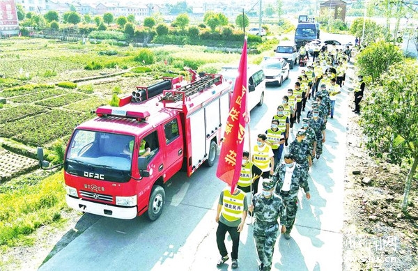 近日,随县澴潭镇开展防汛抗洪演练。该镇党委政府负责人现场参与指挥80余名应急队员,进行装运砂袋、救生、转移人员等应急任务。通过演练,提高防汛抗灾避灾意识和应急反应能力,最大限度地减轻水灾造成的损失,保障人民群众生命财产安全。(随州日报全媒记者李文军、通讯员廖明安摄)