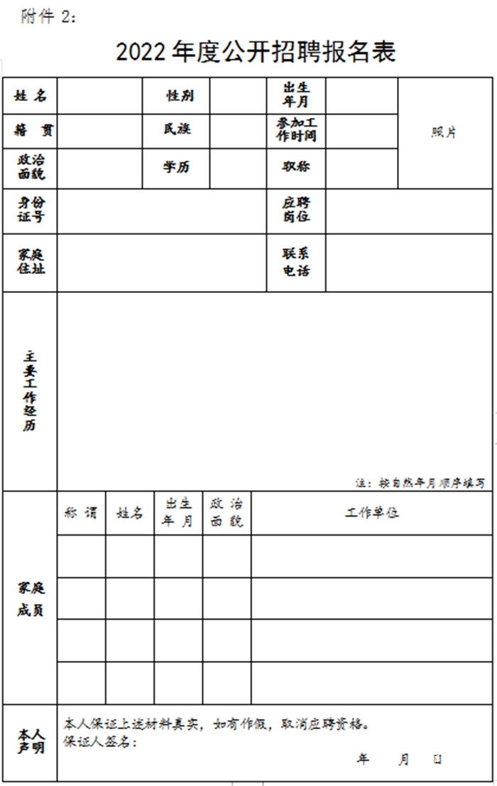 2.报名方式:应聘者下载并填写《2022年度公开招聘报名登记表》(附件2)发送至电子邮箱
