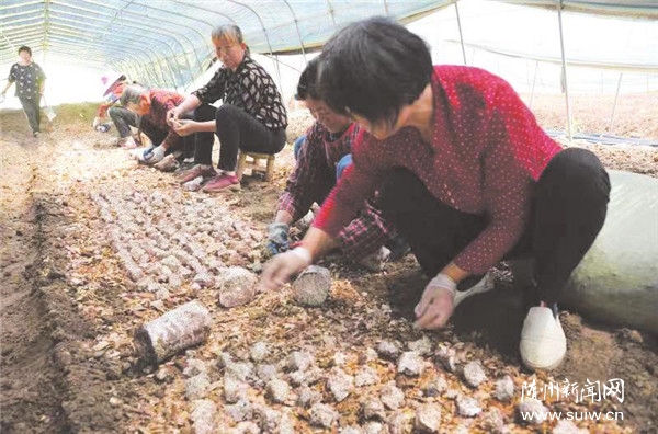 5月17日,市食用菌协会组织专家科普队,深入菇棚送技术、解难题。图为随县长见食用菌专业合作社社员接受专家培训后,正在抢季节播种红托竹荪菌。 (随州日报通讯员许景闻、石守京摄)