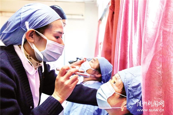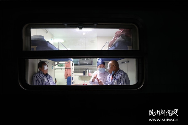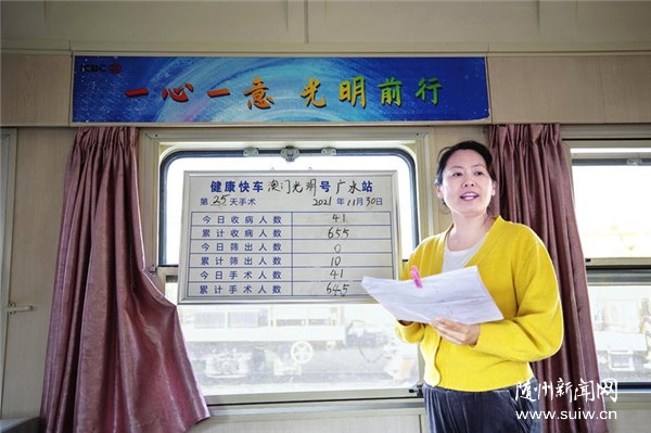 “健康快车”由手术车、病房车、发电餐饮车、宿营车4节车厢编挂组成。手术车厢内可以同时进行2台手术。手术之前,患者先在健康快车合作医院广水二医院接受严格的筛查,对患者眼压和视力进行测试,符合手术指征的患者会被统一送到健康快车进行免费白内障手术。