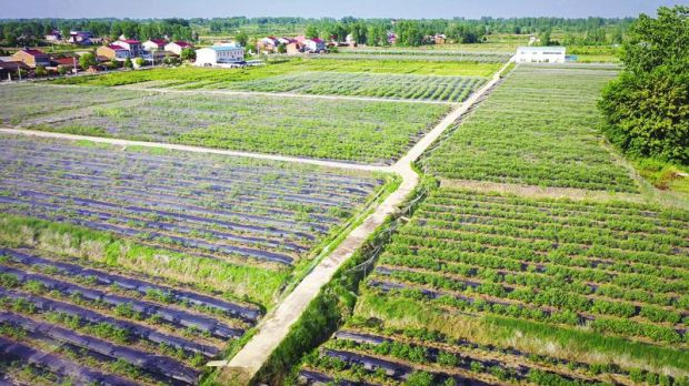 随县安居镇是我市蔬菜、水果大镇。该镇注重发展设施农业,提升种植质效,推动乡村振兴。图为该镇夏家畈村利用黑色地膜、防鸟防虫网等设施发展的蓝莓种植基地。