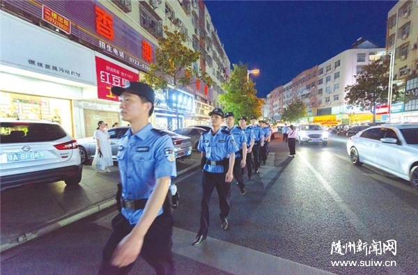 6月17日晚,广水市公安局巡逻大队组织警力在应山城区主要街道巡逻防控,开展“五小场所”安全整治大行动,提高见警率,营造安全稳定的治安环境,提升群众安全感。 (随州日报通讯员熊熙、陈引摄)
