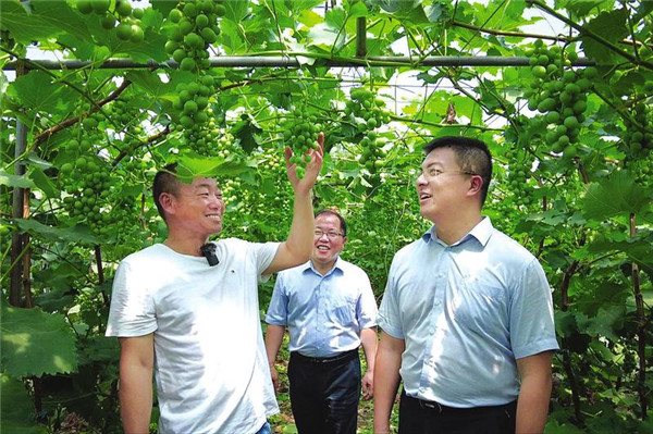 随州农商行万福支行当好金融“店小二”,截至5月底,已为本地“三农”客户、个体工商户和小微企业提供1.2亿元的信贷支持。图为该行金融服务专班在“下基层、察民情、解民忧、暖民心”实践活动中,到随县福润现代农业投资有限公司大棚葡萄、蔬菜种植基地走访,拟为其提供500万元支农担保贷款,助力扩大经营规模。 (随州日报全媒记者 李文军摄)
