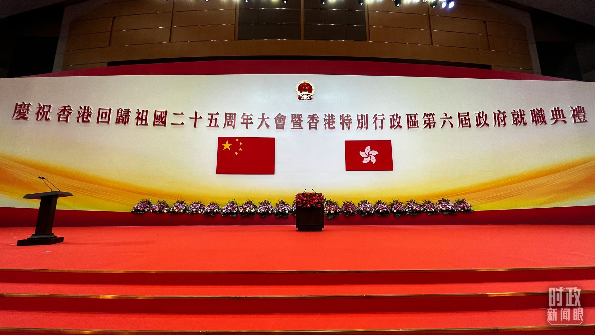 当天上午,庆祝大会暨就职典礼在香港会展中心举行。25年前,1997年6月30日午夜至7月1日凌晨,中英两国政府香港政权交接仪式也是在此举行。历经百年沧桑的香港回到祖国怀抱,当时的历史画面已经成为全体中国人的集体记忆。