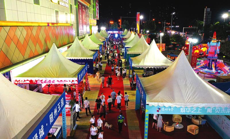 7月8日晚,在万达广场举行的随州夏季房地产交易展示会吸引了不少市民。(随州日报全媒记者李文军摄)