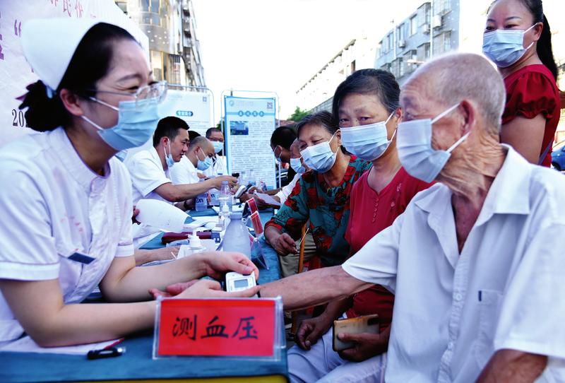 8月11日上午,广水一医院太平籍13名医护专家在广水市太平镇太平街开展“不忘初心心系家乡”大型义诊活动,为乡亲们问诊提供便利,共同缔造美好幸福生活。
