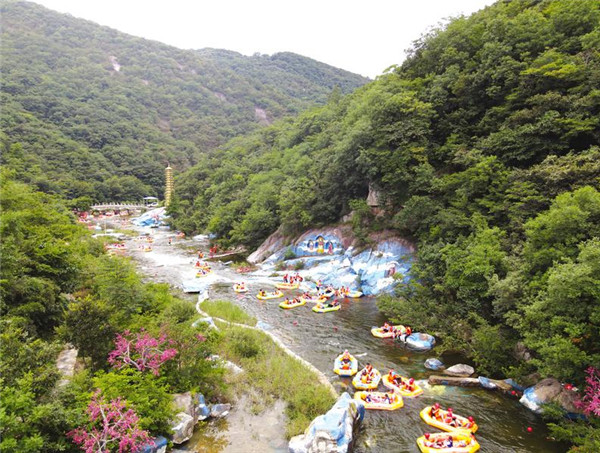 持续高温天气,随州西游记漂流迎来客流高峰,尤其是升级后的可同时乘坐四人的亲子互动船,受到以家庭为单位的自驾游群体的青睐。入夏以来,西游记漂流景区日均接待游客4000余人次,周末时日均客流达7000余人次。图为8月11日在西游记漂流景区,游客欢乐体验千里淮河第一漂,畅享夏日美好生活。 (随州日报全媒记者 陈云摄)