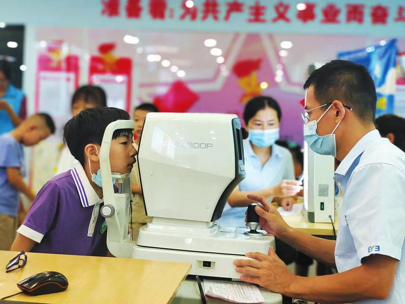 快乐假期,护眼莫忘!近日,共青团曾都区委、随州市阳光雨社会工作服务中心联合随州爱尔眼科医院,在曾都区青少年活动中心开展“爱眼护眼”知识讲座及视力检测活动,医护人员为孩子们进行了视力检查,并向大家讲解了近视防控知识、眼睛发育及眼睛保健相关知识,增强孩子们科学用眼意识。 (随州日报全媒记者陈巧玲、通讯员张雨微摄)