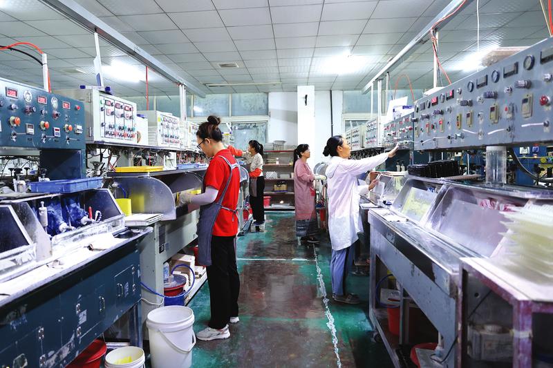 位于随县唐县镇的华亿光电科技股份有限公司主要生产“光学透镜”,产品与摄像头、相机、车载镜头、医疗器械探头、显微镜等精密仪器配套。图为镜片研磨生产线。 (随州日报全媒记者 李文军摄)