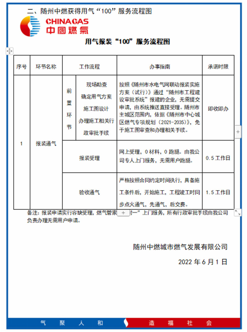 随州中燃始终秉承“气聚人和、造福社会”的企业理念,以“诚信、创新、合作”的企业精神服务于社会,为进一步优化营商环境,提高办事效率,服务工商业用户和人民群众,特承诺如下: