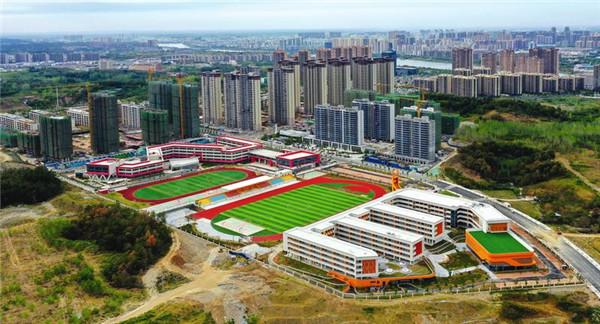 图为新建成的曾都区编钟小学和已经投入使用的编钟中学。(随州日报全媒记者 徐斌摄)