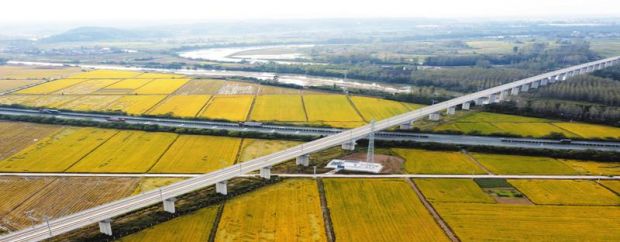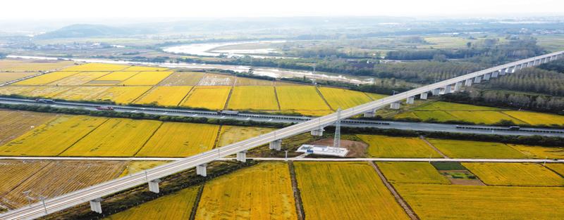 随县均川镇均河口村,汉十高铁与许广高速在这里相交。(随州日报全媒记者徐斌摄)