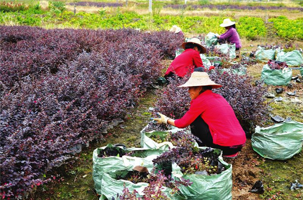 忙时种田,闲时家门口打工。10月24日,曾都区洛阳镇珠宝山村村民在当地的苗圃基地帮忙打理苗圃。村民们说,他们通过在家门口打工,每天有近百元的收入。 (随州日报全媒记者孙洪涛摄)