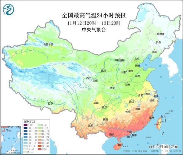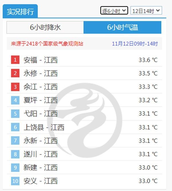 看看12日下午的全国气温榜