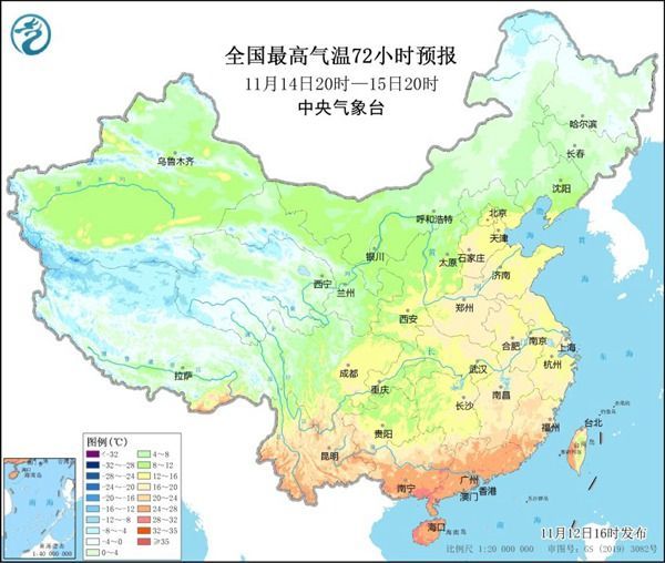 从东北、华北南部一直到华南北部气温都会下滑
