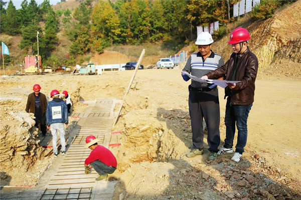 11月10日,在鄂北地区水资源配置工程、曾都区两河口水库施工现场,工人们正在抓紧配套工程建设。该工程设计总投资1.23亿元。工程建成后,可解决曾都区万店镇4万余人饮水安全问题。 (随州日报全媒记者 孙洪涛摄)