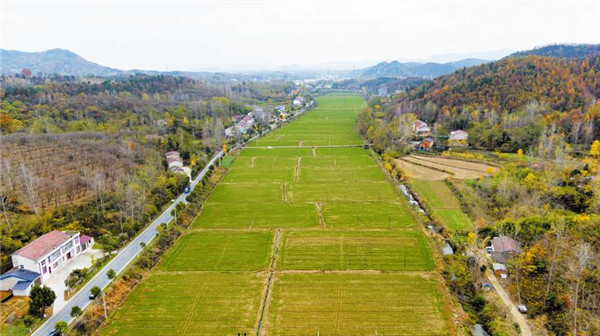 今年,曾都区洛阳镇早谋划早行动,抢抓农时,以农户作为种植主体奖补种子肥料,种植大户、家庭农场等新型经营主体流转种植提供社会化服务等政策保障,村集体兜底种植统筹资金支持,多措并举实现了秋冬播应种尽种。图为珠宝山村连片种植的油菜和小麦。 (随州日报全媒记者 徐斌摄)