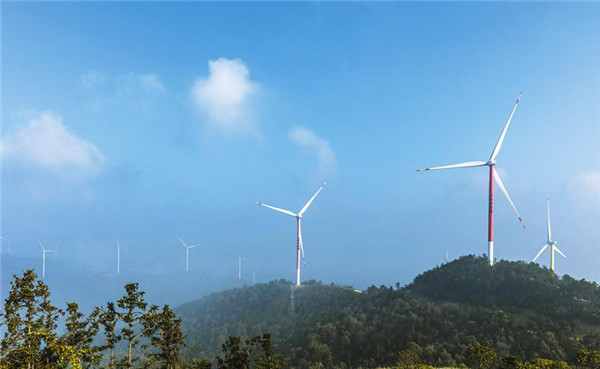 丰华曾都君子山风电场,地跨随州高新区淅河镇、曾都区府河镇、洛阳镇,总装机容量99兆瓦,满负荷运行年可发电2.3亿千瓦时,是我市新能源发电的重要项目之一。图为初冬时节风电场美丽的风光。 (随州日报通讯员 韩起璞摄)