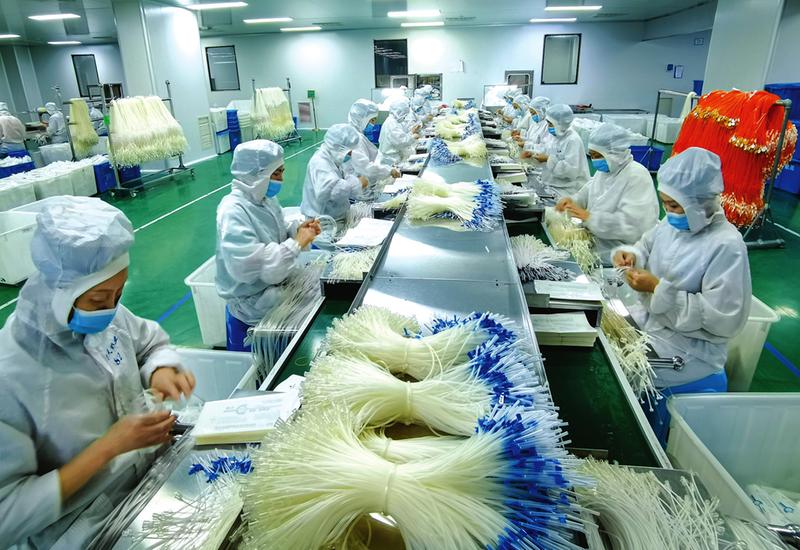 楚天药业位于曾都区南郊街道,专注研发生产医用高分子输注类和防护类耗材,是国家级高新技术企业、省专精特新“小巨人”企业。新冠疫情发生以来,公司将产能向抗疫产品倾斜,最大程度保障重点产品供货数量,并根据防疫情况实时调整生产计划。
