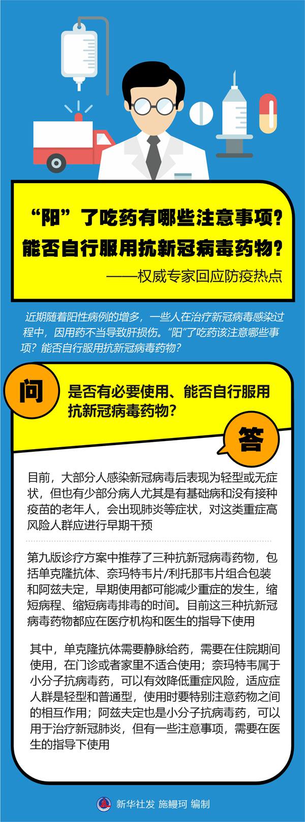 近期随着阳性病例的增多,一些人在治疗新冠病毒感染过程中,因用药不当导致肝损伤。“阳”了吃药该注意哪些事项?能否自行服用抗新冠病毒药物?国务院联防联控机制组织权威专家——中日友好医院呼吸中心副主任杨汀、北京大学第一医院感染疾病科主任王贵强、北京儿童医院急诊科主任王荃就公众关心的问题做出专业解答。