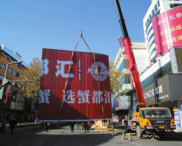 为优化随城解放路商业街环境,10月份以来,曾都区东城街道综合执法中心积极开展城市“洁面净脸”专项行动,对解放路商业街建筑立面和楼顶广告进行全面清理,拆除违规设置和残损破旧大型户外广告牌3600余平方米。图为12月22日拆除巨幅广告牌的情景。