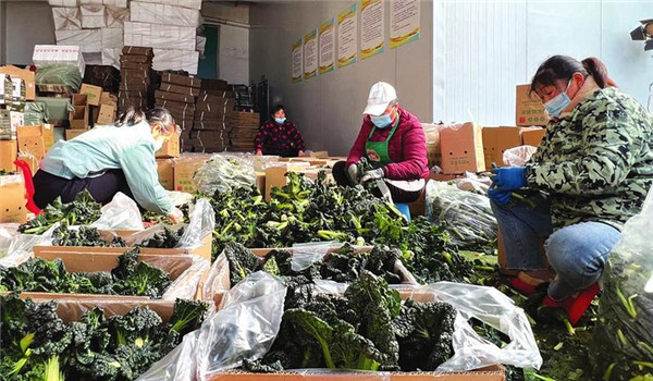 在该公司的打包车间看到,四五名工人将再次精选后的泡泡青,分装成五斤一份进行打包。除此以外,还有沙湾萝卜、蒜苗、菠菜等随州本地时令蔬菜等待发货。