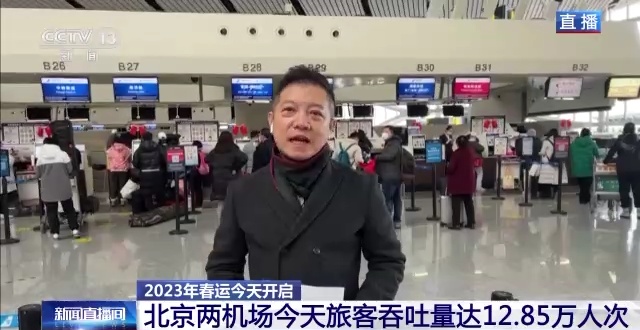 总台央视记者 陈俏: 今年春运自1月7日开始至2月15日结束,共计40天。随着疫情形势变化及防控政策的调整,预计2023年春运期间,返乡探亲、旅行等旅客出行需求量有明显增加。目前,南航热门航线客座率已达90%以上,东航热门航线机票预订量翻倍;厦航、中联航、首都航等航班量都有显著提升。 与此同时,大兴机场和首都机场正在加快推进国际航线恢复。