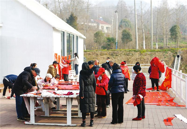 1月11日,曾都区文联组织红色文艺轻骑兵分队走进洛阳镇,开展“宣传贯彻二十大,文化惠民进万家”活动。曾都区书法家协会的书法家们为当地群众免费写春联100余副;曾都区摄影家协会的摄影家们走进农家,为群众拍摄全家福20余幅。 (随州日报全媒记者 徐斌摄)