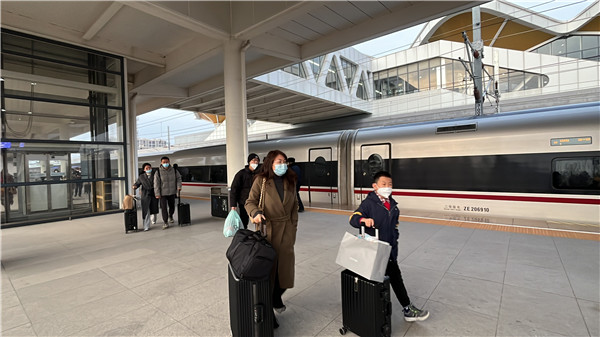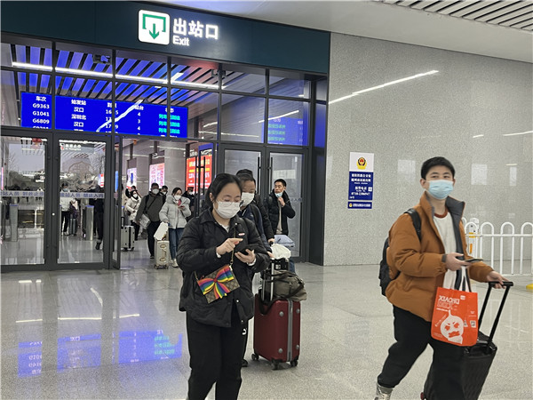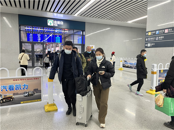 随州日报讯(全媒记者王聪莹、见习记者钟金辉)春节意味着团圆,回家过年是每个游子心中最美的旅程。1月16日(腊月二十五),记者在随州南高铁站看见,返乡的旅客带着大包小包,迈着激动的步伐,兴奋地向着家的地方前进……