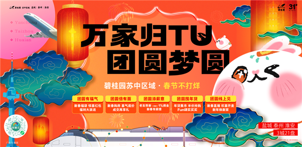 盐城、淮安、泰州看过来!打卡新春喜乐会,悦享兔年文化大赏,新春福袋、红包墙,摇钱树到访即享,购房百万钜惠、老带新享高额佣金等,多重新春折扣福利享不停。