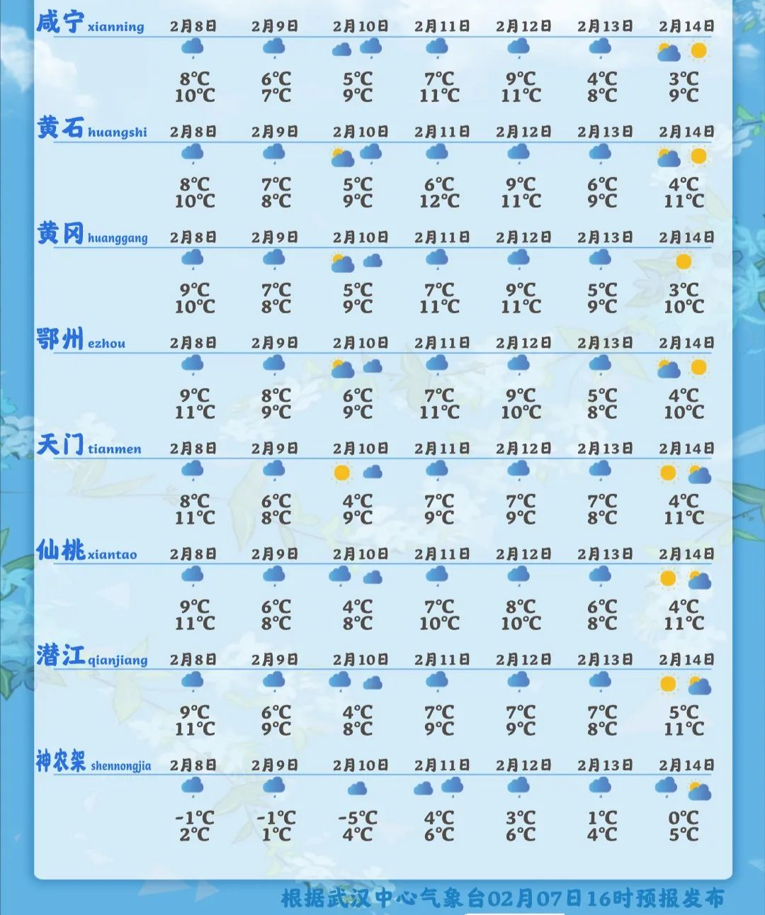 武汉中心气象台2月7日17时预报